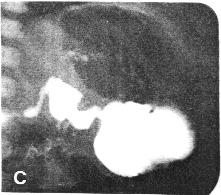| Fig. 20.2. Case R.G. Constant spasm of pyloric sphincteric cylinder, simulating infantile hypertrophic pyloric stenosis. At operation no muscular hypertrophy was found |