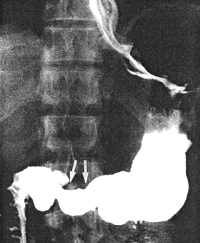 - A presumptive radiological diagnosis of chronic gastritis affecting the sphincteric
