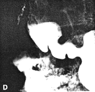| Fig. 29.1 A-D. Case C.W. Constant contraction or spasticity of pyloric sphincteric cylinder. Cyclical activity absent. Pyloric aperture "fixed" in patent position (B-D) | |