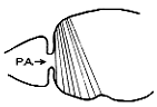 | Fig. 3.4. F.M., fan-shaped muscle according to Cole; its concentric contraction causes formation of the pyloric canal; P.A., pyloric aperture |