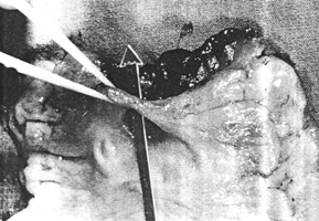 At operation considerable fibrotic reaction was encountered and the duodenum had to be dissected from the pancreas. A truncal vagotomy, antrectomy and Billroth I anastomosis was performed. The resection specimen showed a second aperture between the stomach and duodenum next to the normal pylorus, with a bridge of mucosal tissue between the 2 apertures (Fig. 31.1B) confirming the diagnosis of pyloroduodenal fistula or so-called double pylorus. Case 31.2. J.N., 55 year old male, complained of burning epigastric pain of 4 months' duration. It commenced an hour after meals and was relieved by food and antacids. There was intermittent nausea with some loss of appetite and weight. Previously he had been treated for ischaemic heart disease, gout, ethanol and aspirin abuse.
