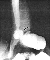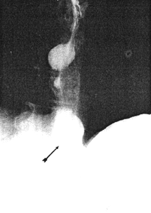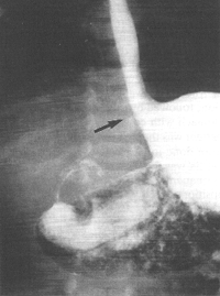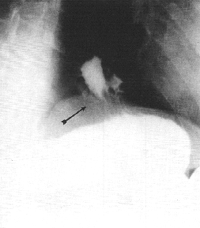 | Fig. 32.5 A. Case N.M. Sliding hiatus hernia (arrow) |