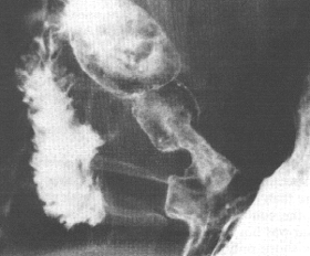 | Fig. 33.11.Case K.B. Constricting pyloric filling defect. Base of duodenal bulb normal. |