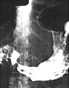 | Fig. 33.7. A Case M.B. Narrowing distal 3.0 to 4.0 cm of stomach resembling partial contraction or spasm of sphincteric cylinder. |