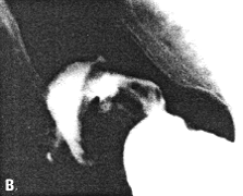 vaguely simulating the normal cylinder was seen (Fig. 33.7A). In some