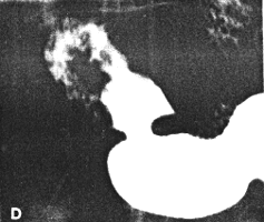 | Fig. 37.3. A-D Case F.J. Pyloric sphincteric cylinder permanently contracted. Cyclical activity absent. Pyloric aperture patulous with diameter of 1.0 cm | |