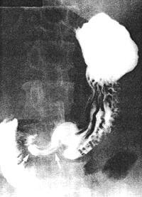 Gramm et al. (l978) reviewed the radiological findings in 43 patients with diabetic gastric neuropathy. (It was said that the condition was seen more often on account of the increased longevity of diabetic patients). In the majority the stomach had an elongated, sausage-shaped configuration; there was sluggish, irregular gastric peristalsis with retention of solid food and barium in the absence of an organic obstruction at the pylorus.