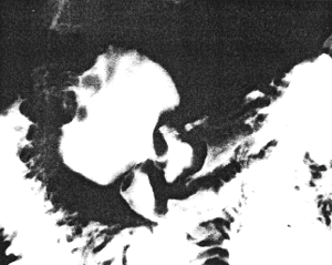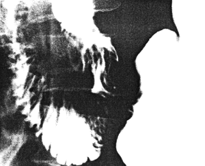 | Fig. 38.2 B. Case A.A. Maximal contraction of sphincteric cylinder. Umbrella-like defect base of bulb, continuous with longitudinal mucosal folds in pyloric canal |