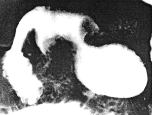 Eliason et al. (l926) described a case of a 61 year old male in which the pre-operative radiographs showed a defect extending through the pylorus into the base of the duodenal bulb. It was thought to be a pedunculated tumor of the stomach but operation revealed redundant gastric mucosal folds extending through the pylorus into the duodenum. In another case, that of a 29 year old male, radiographs showed a similar defect in the base of the duodenal bulb. At operation it was found that the pyloric mucous membrane was freely mobile upon the muscle coat and that it had prolapsed through the pylorus into the duodenum. A healed duodenal ulcer was also present.