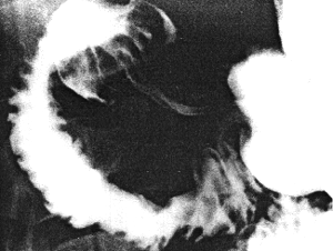 Levin (l97l) again stated that the duodenal defect of prolapsed gastric mucosa became more prominent during "gastric systole", and that the shape of the bulb reverted to normal during "gastric diastole".
